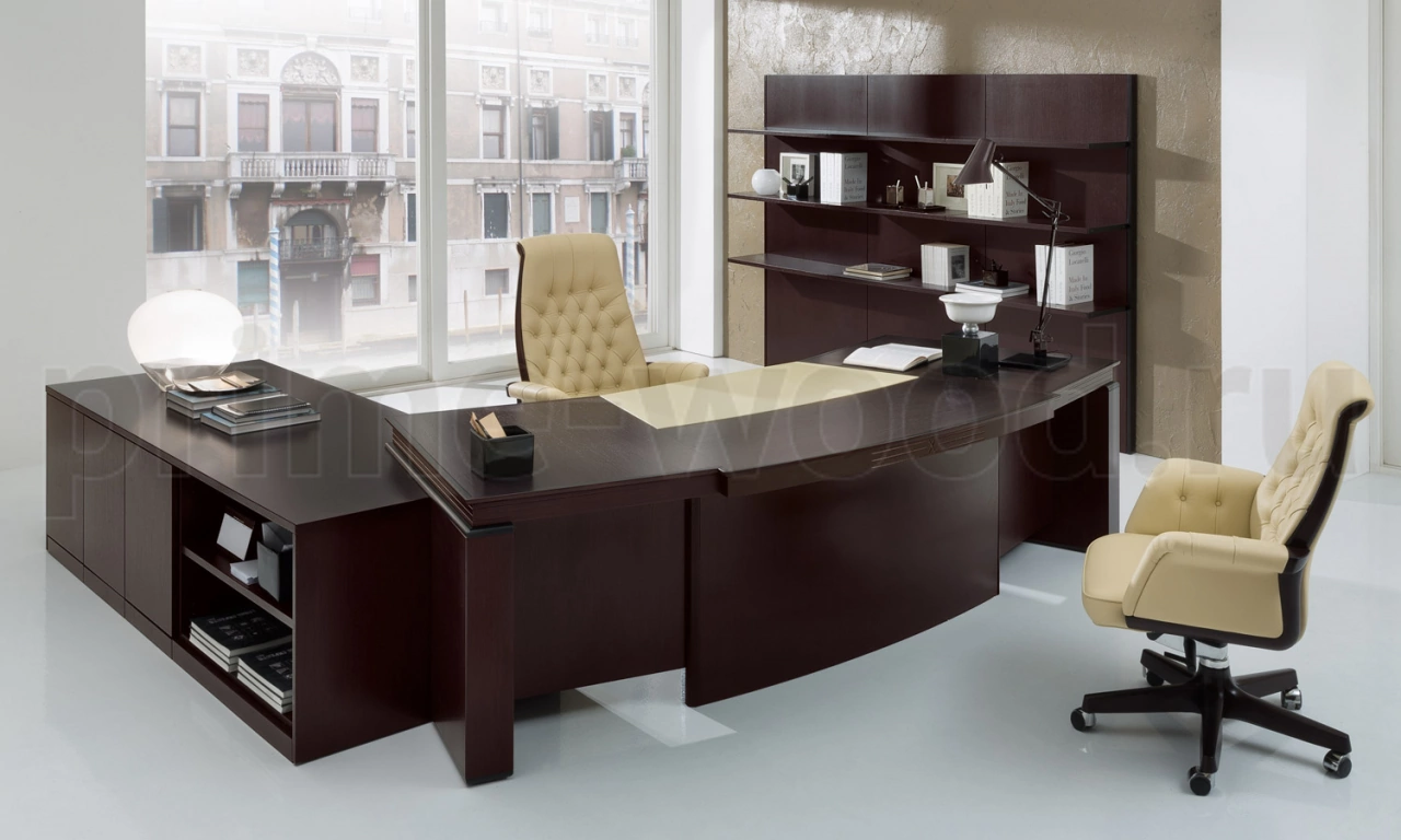 Кабинет EUR, пользующийся самым высоким спросом среди руководителей высшего ранга, – достойный выбор тех, кто ценит престиж, элегантность и комфорт. Строгая лаконичность линий идеально гармонирует с декором теплых тонов ценных пород дерева, используемых при отделке.