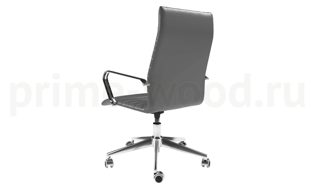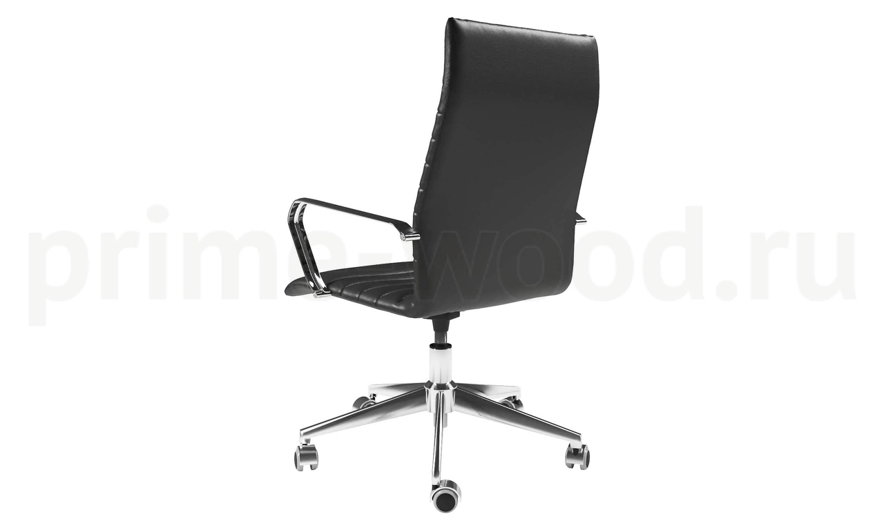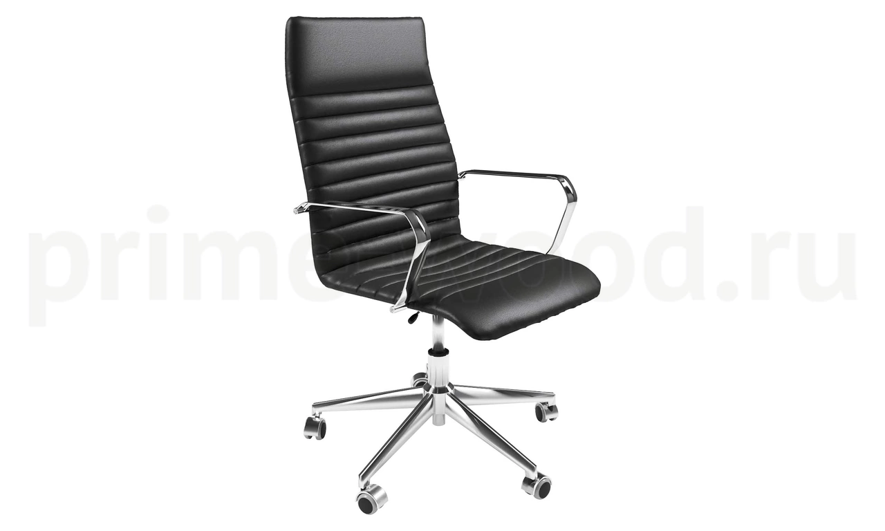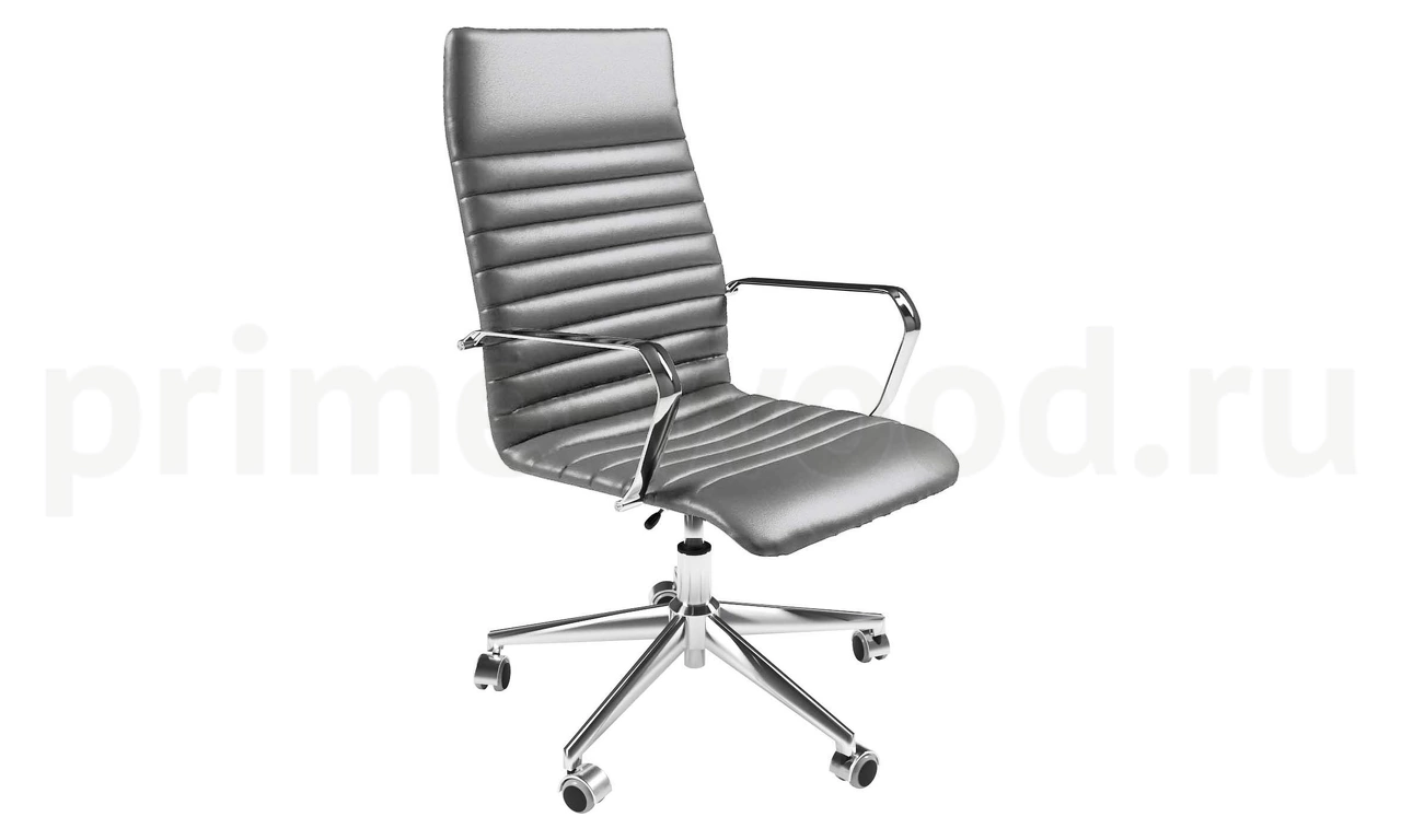 Кресло с высокой спинкой. Механизм - top-gun. База - стальная хромированная d=700 мм. Колеса - d=50 мм с хромированным лепестком. Подлокотники - стальные хромированные.