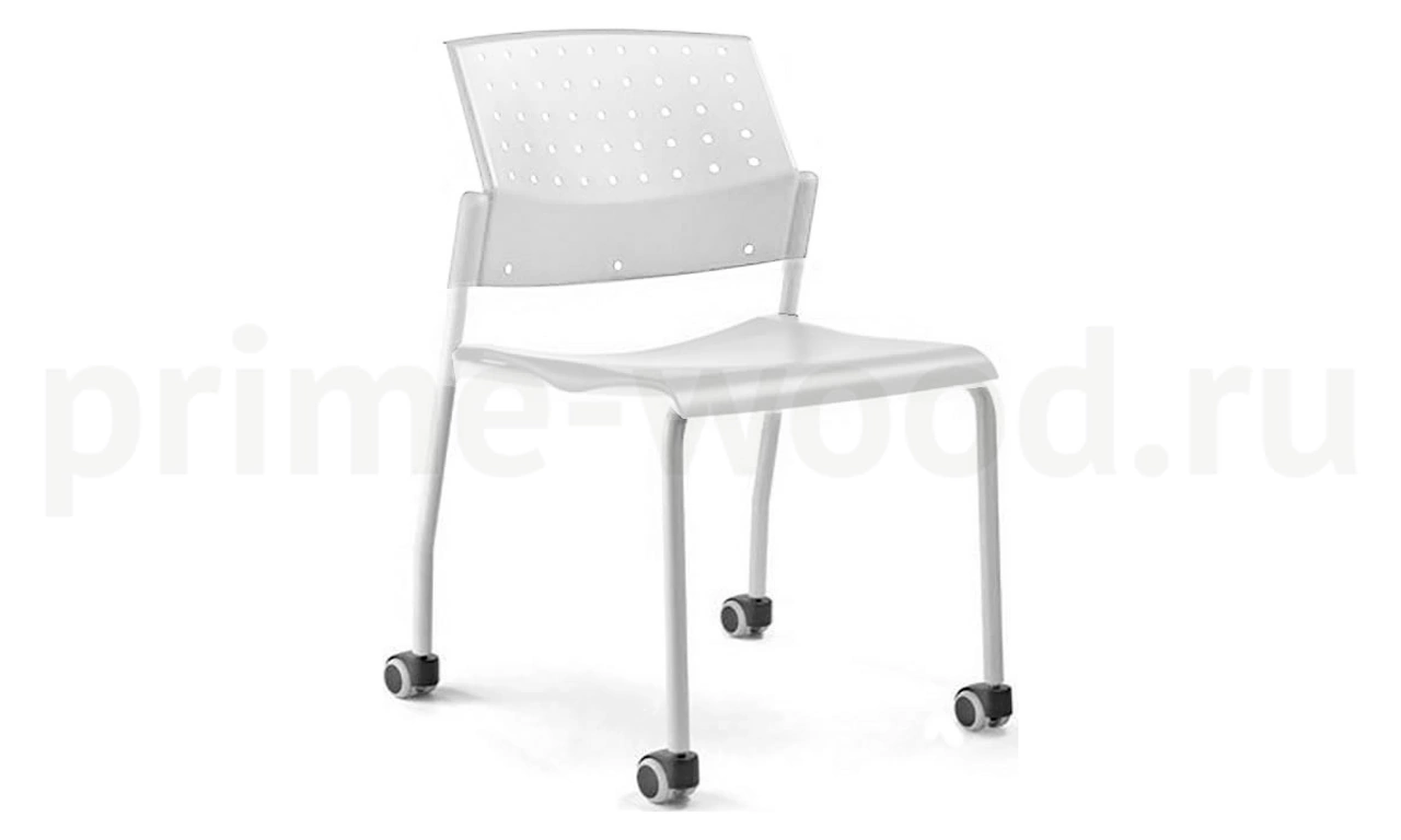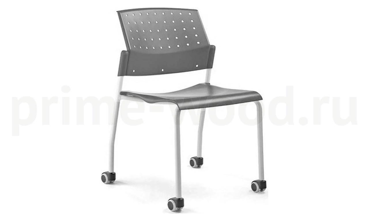 Каркас - серый металлик, сиденье - пластик, спинка - пластик, колеса - d=50, пластик обрезиненный.