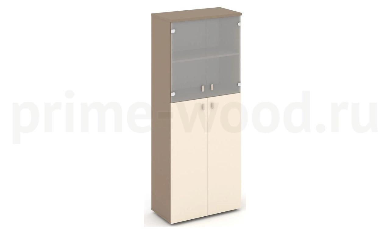 Шкаф высокий широкий (2 средних фасада ЛДСП + 2 низких фасада стекло сатин матовый)